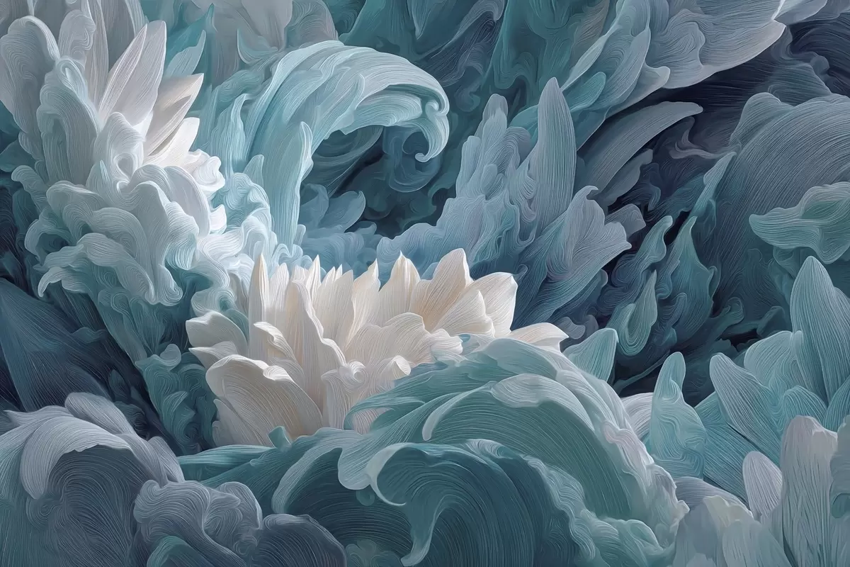 Fotomurales Danza de pétalos y olas del mar en tonos azules Nr. w09454