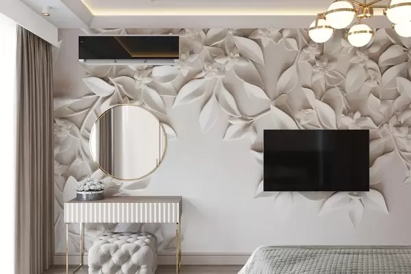 murales de pared Flores y hojas blancas con textura, arreglo floral, diseño elegante, estilo minimalista, arte decorativo w09479