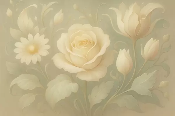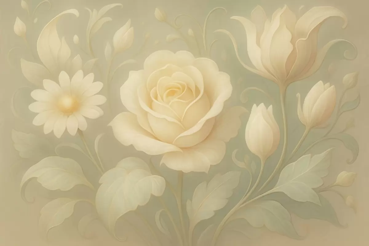 Fotomurales Delicada composición vintage con rosas beige sobre fondo verde claro. Nr. w09499