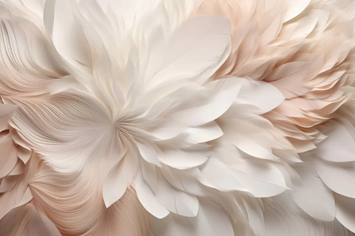 Fotomurales Delicadas plumas abstractas en movimiento en tonos beige y crema. Nr. w09509