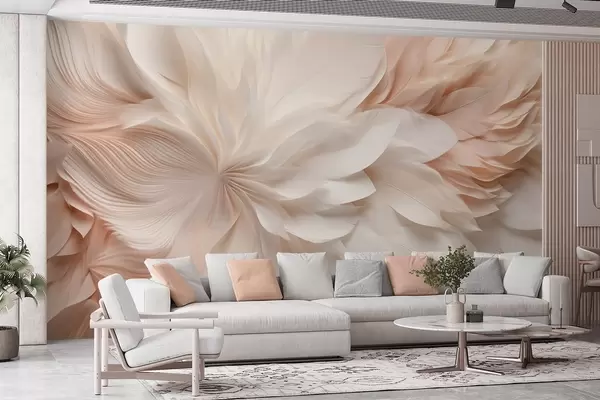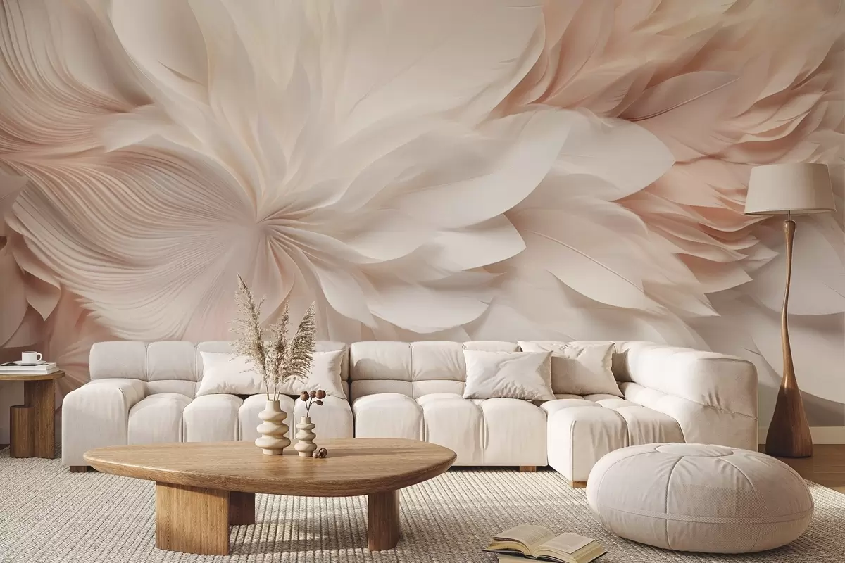 Fotomurales Delicadas plumas abstractas en movimiento en tonos beige y crema. Nr. w09509