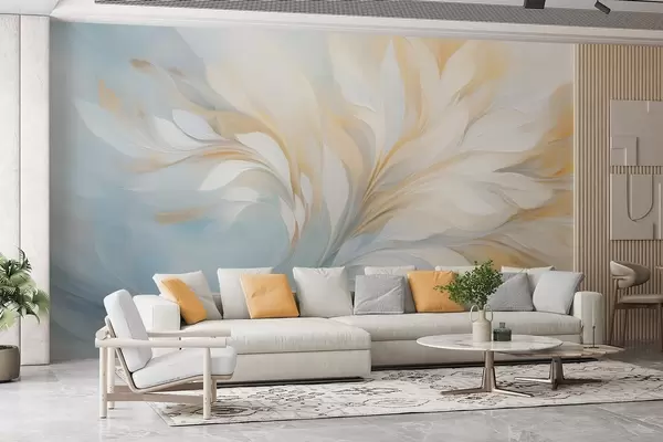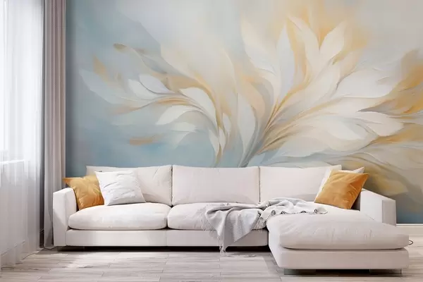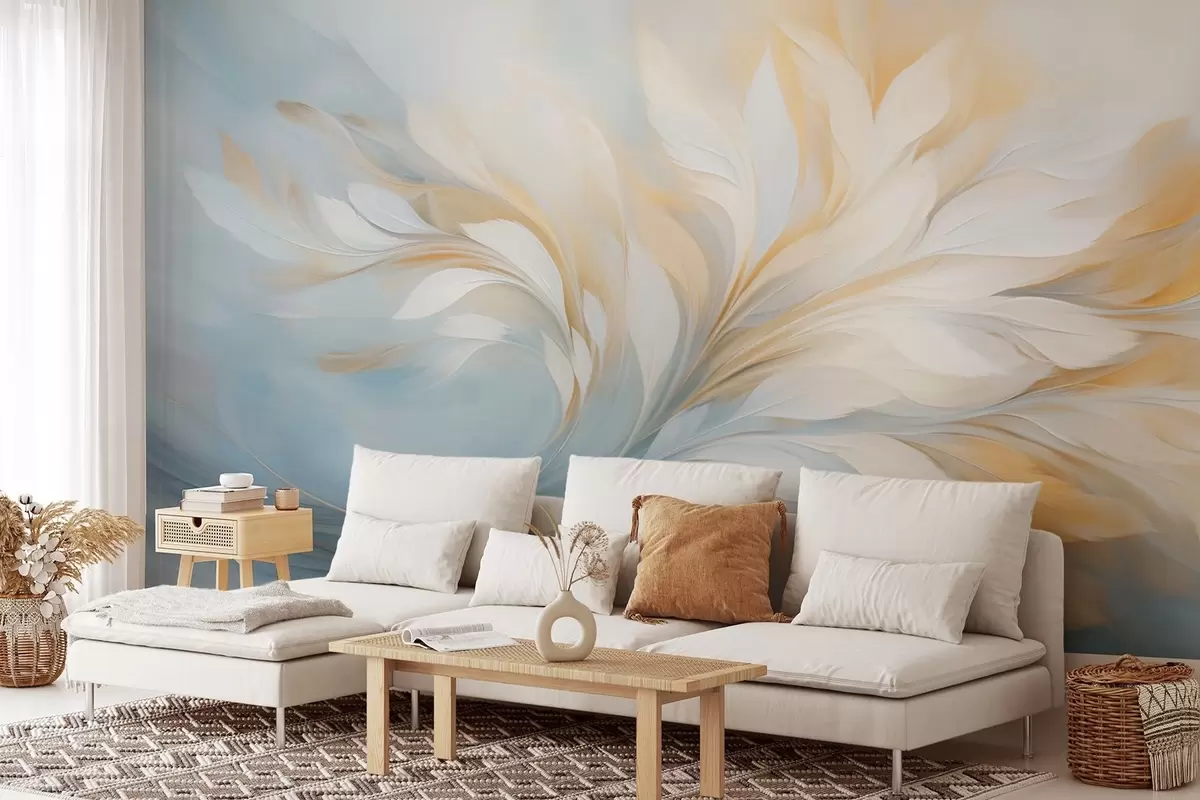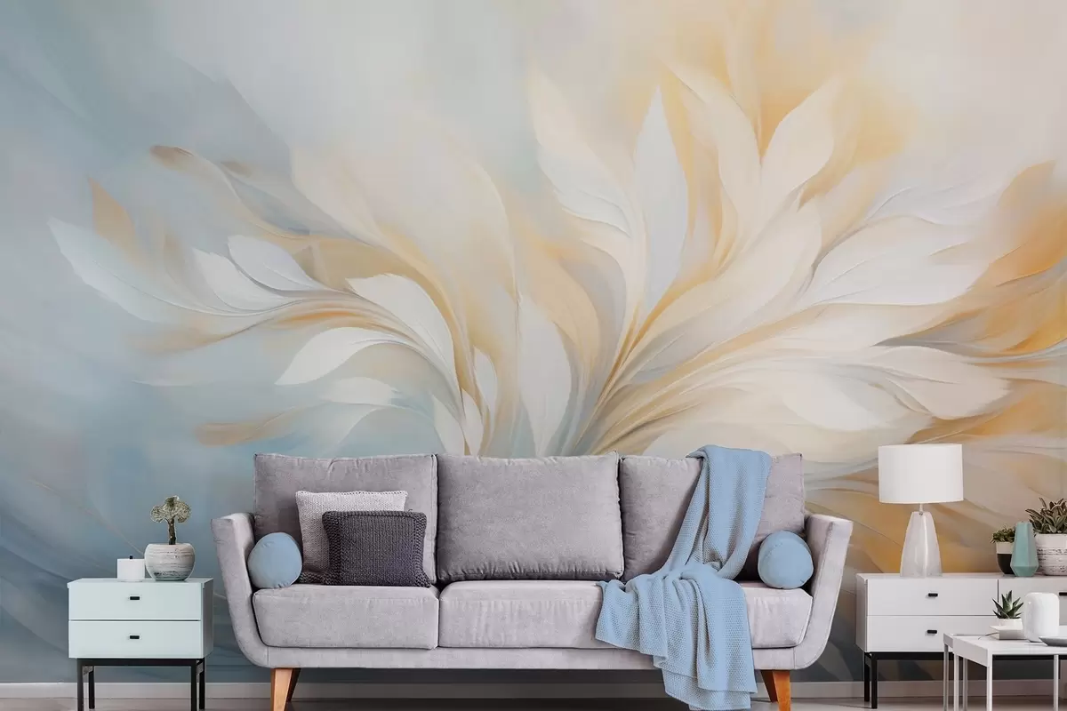 Fotomurales Composición abstracta de formas suaves similares a plumas en tonos amarillos y azules. Nr. w09525