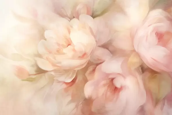 Fotomurales Peonías difuminadas en rosa pálido y crema con suaves pinceladas pictóricas, creando un arreglo floral con textura. Nr. w09556