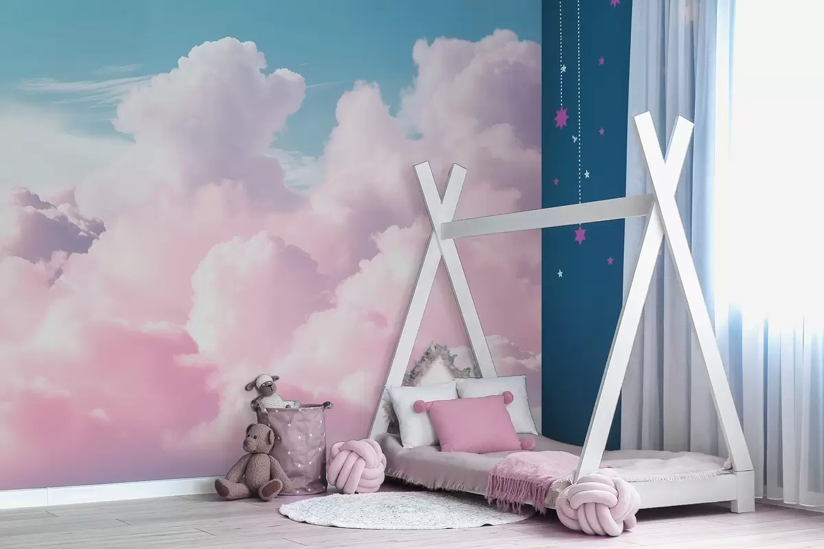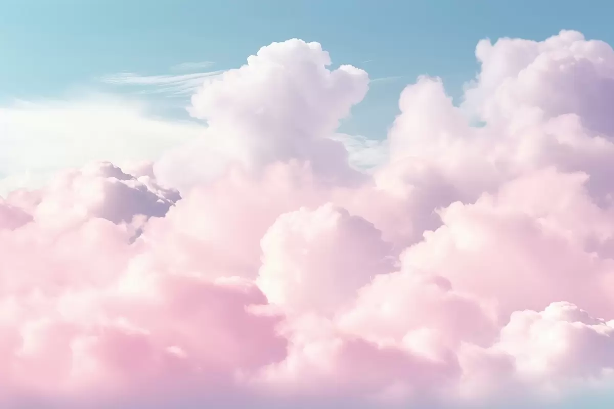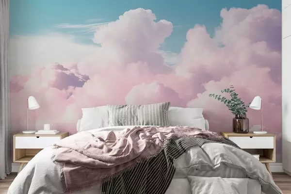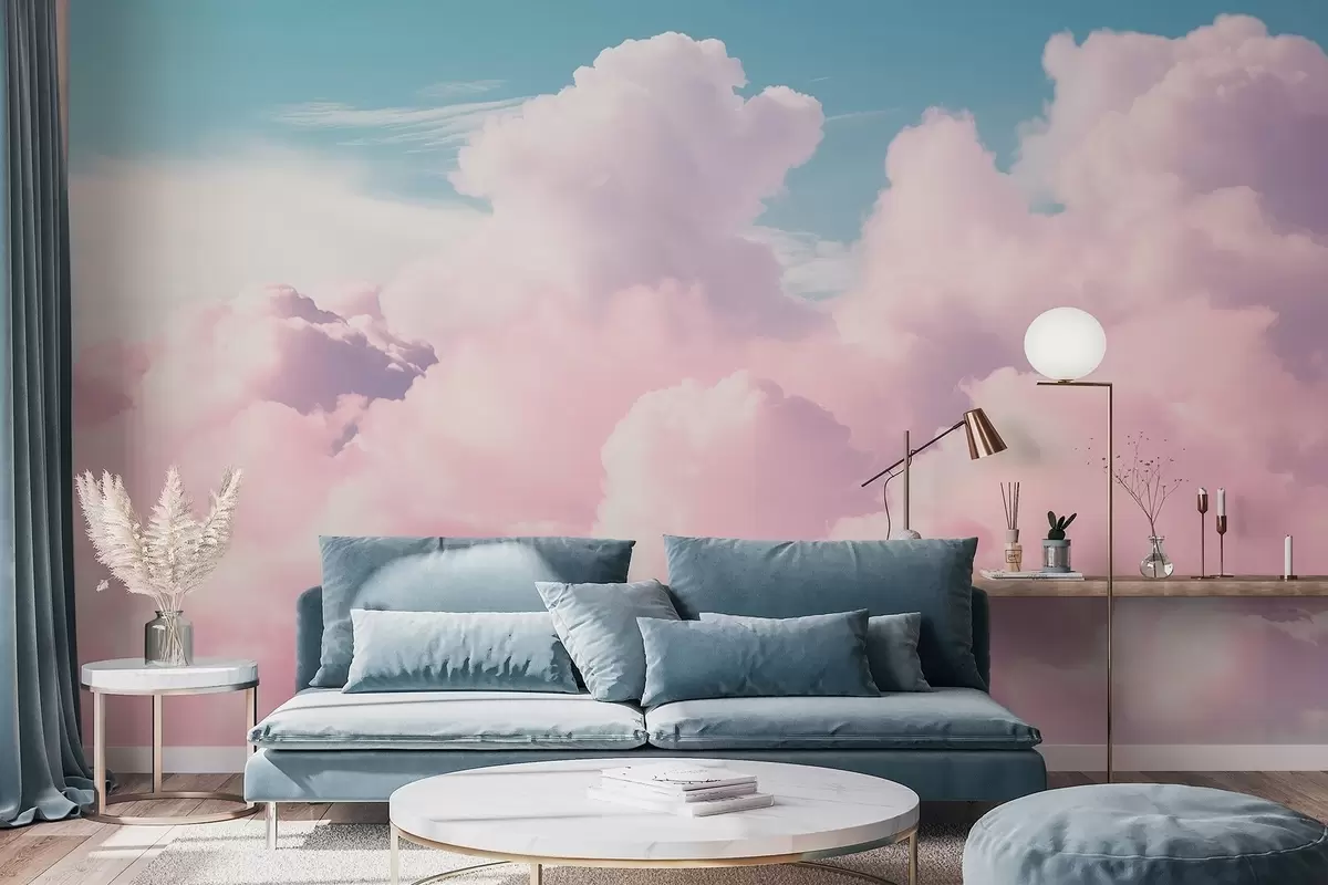 Fotomurales Suaves y vaporosas nubes rosadas en un cielo azul. Nr. w09569
