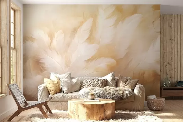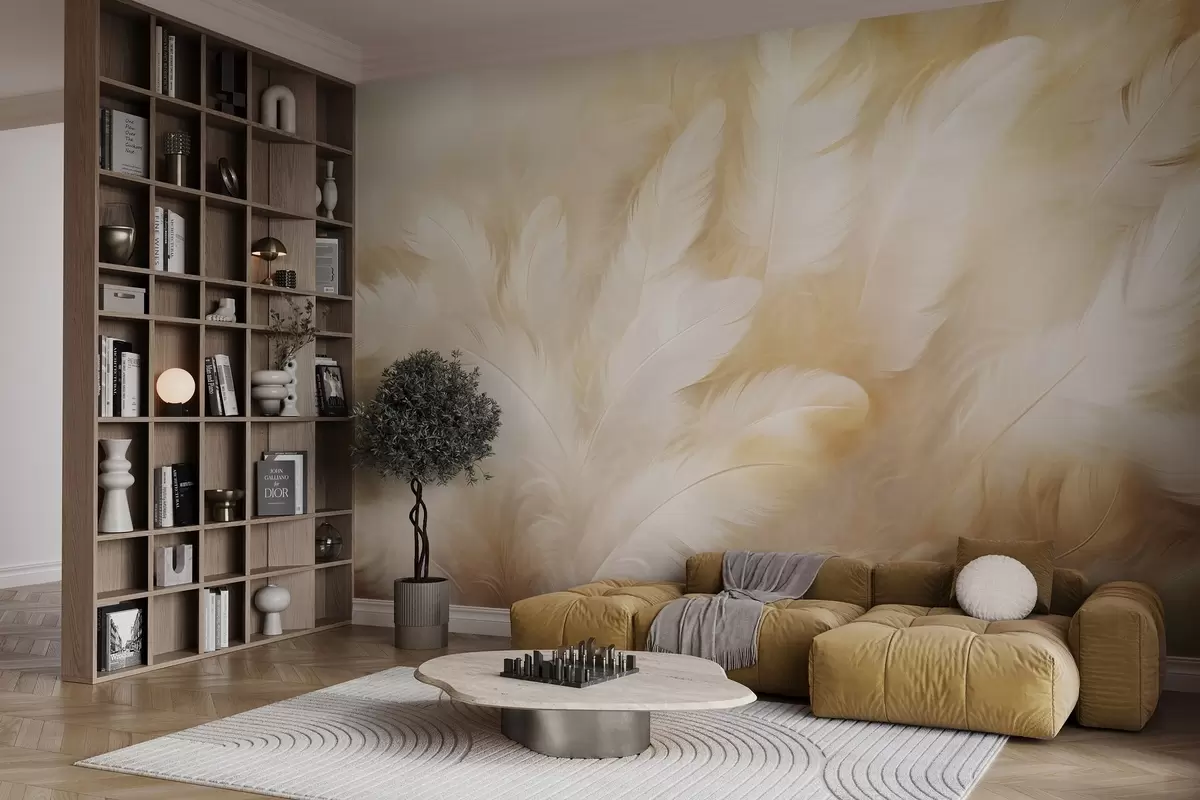 Fotomurales Plumas blancas y amarillas de textura suave. Nr. w09606