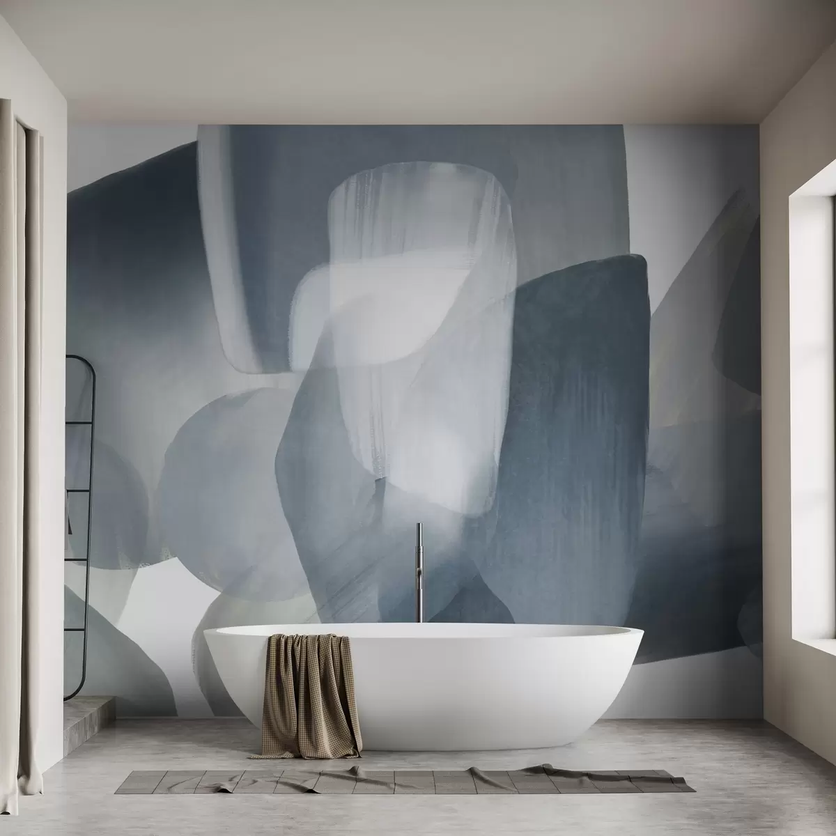 Fotomurales Formas abstractas con textura en colores azul y gris apagados, con bordes suaves y capas superpuestas. Nr. w09642v1