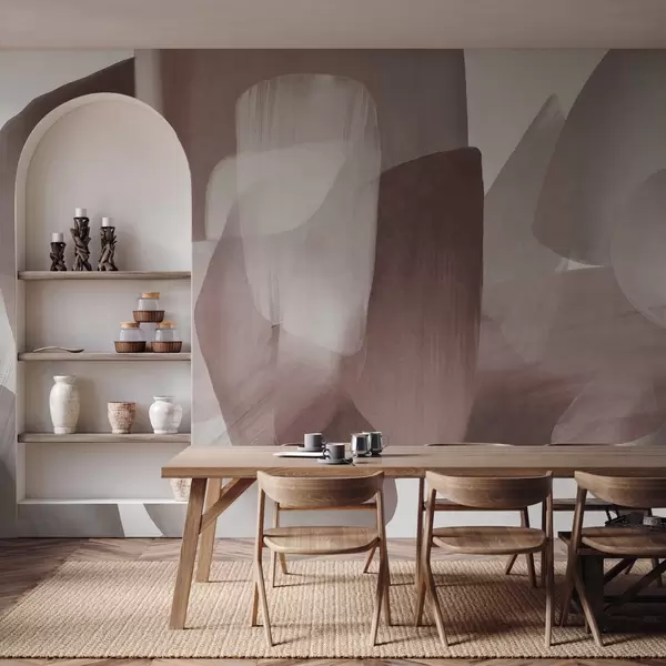 Fotomurales Formas abstractas con textura en colores burdeos y gris apagados, con bordes suaves y capas superpuestas. Nr. w09642v2