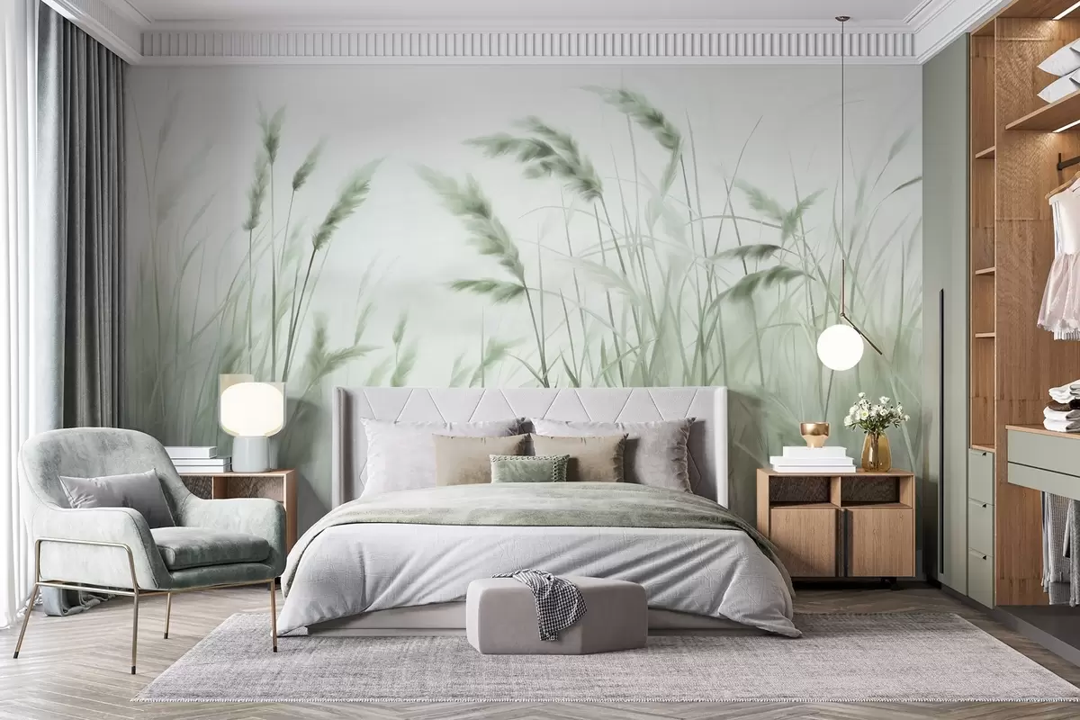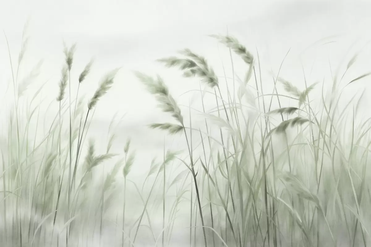 Fotomurales Hierba seca alta y texturizada con espigas de trigo en el campo sobre un fondo suave y pálido. Nr. w09648v1