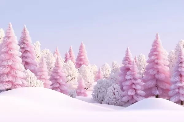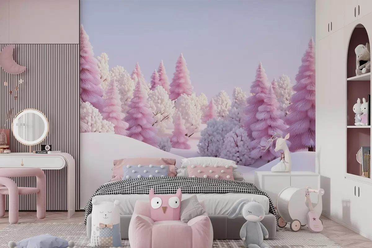 Fotomurales Bosque invernal nevado en tonos rosados Nr. w09654