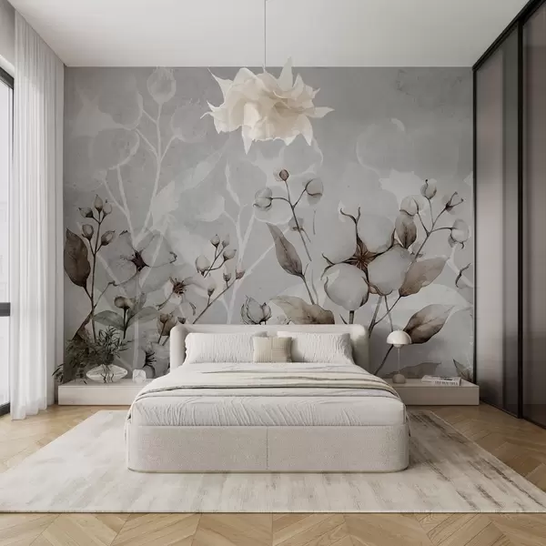 Fotomurales Grandes flores de algodón sobre fondo gris claro. Nr. w09691