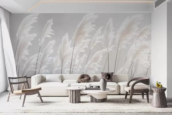 Fotomurales Suave hierba de la pampa blanca bajo la suave luz de la mañana. Nr. w09717