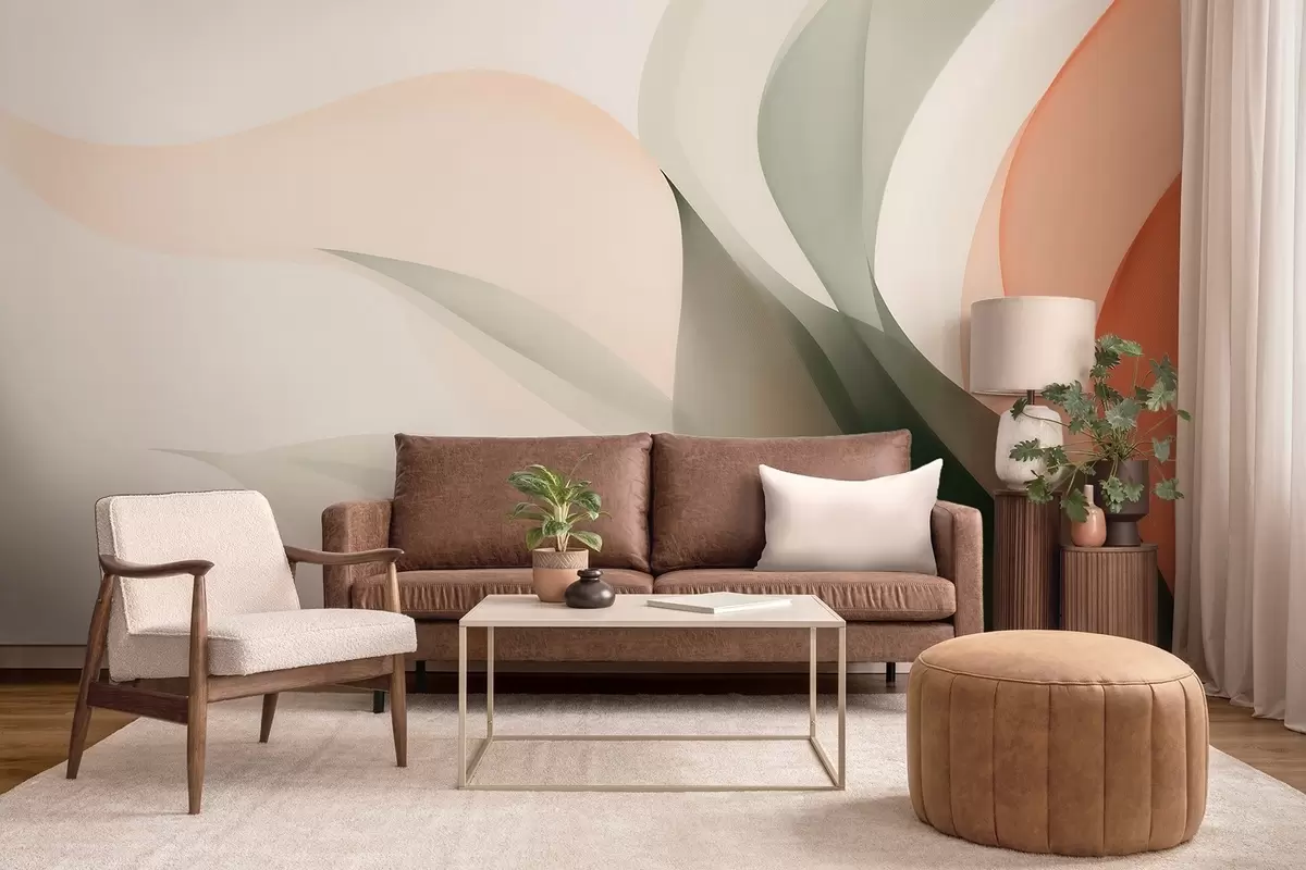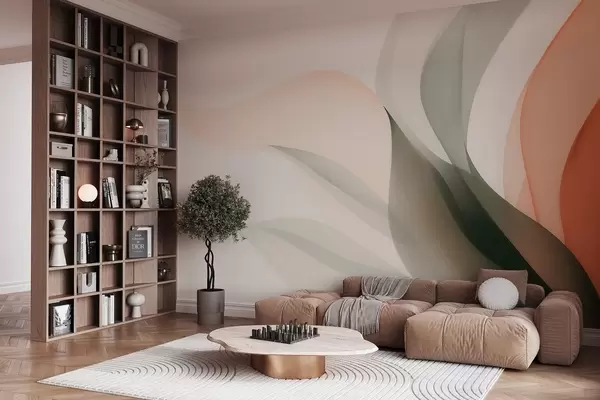 Fotomurales Olas abstractas en tonos naranjas y verdes. Nr. w09718