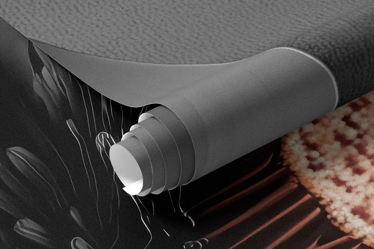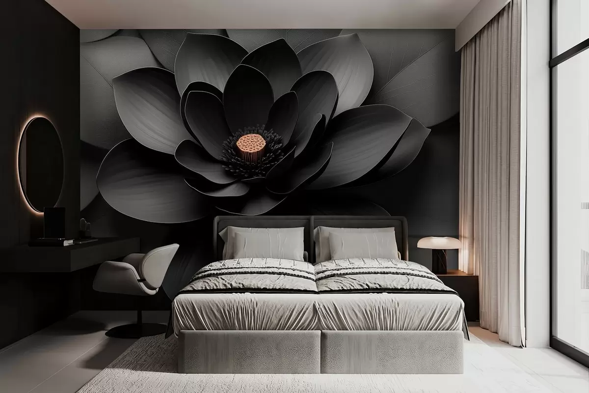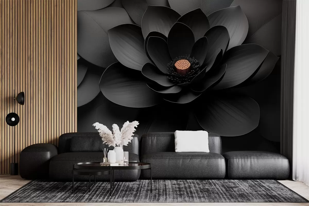 Fotomurales Flor negra minimalista con pétalos y un centro cálido que contrasta Nr. w09721