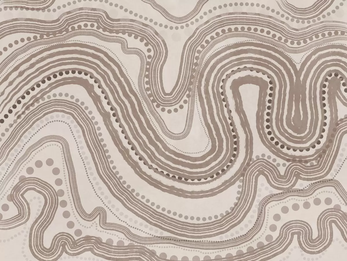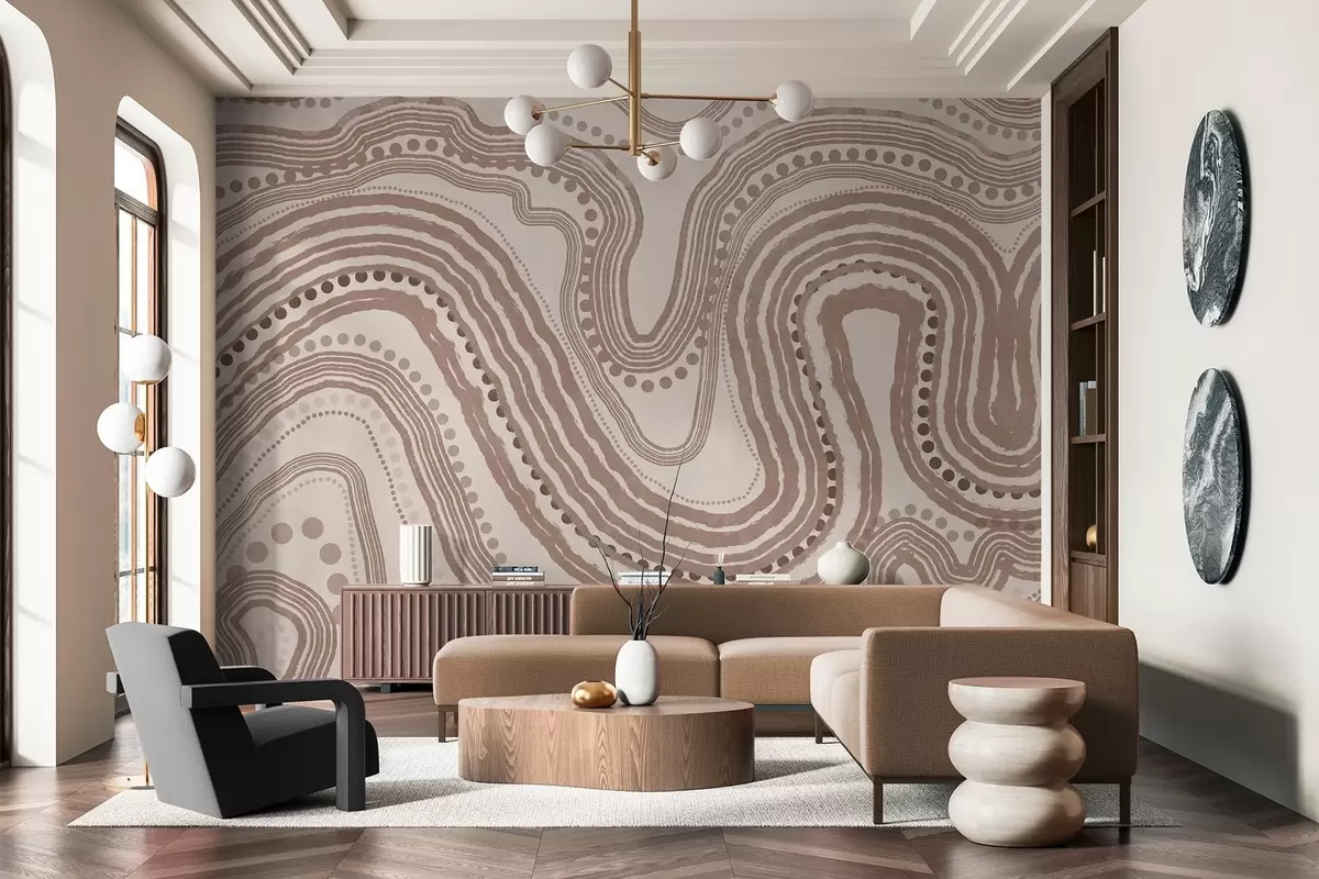 Fotomurales Líneas onduladas y puntos abstractos en marrón y beige, arte moderno con textura. Nr. w09747v1