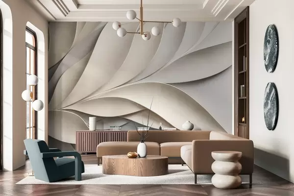 Fotomurales Hojas abstractas en beige y gris, arte moderno con textura. Nr. w09769