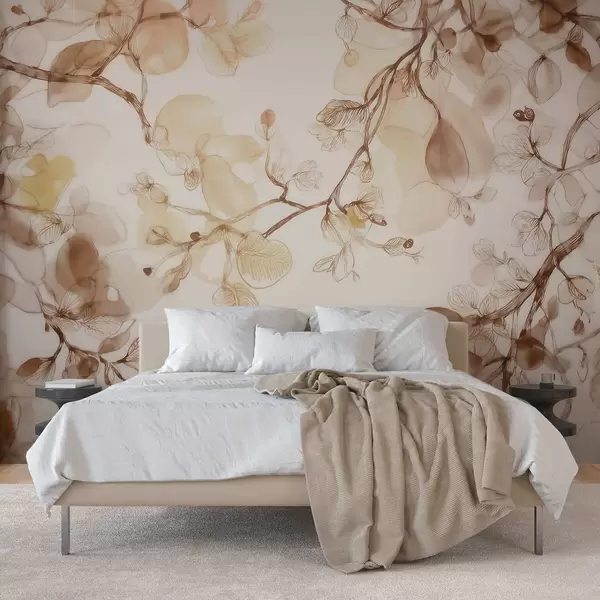 Fotomurales Ramas etéreas que cuelgan en tonos beige, en estilo acuarela Nr. w09795