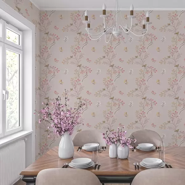 Papel pintado Flores delicadas y colibríes en las ramas a00036