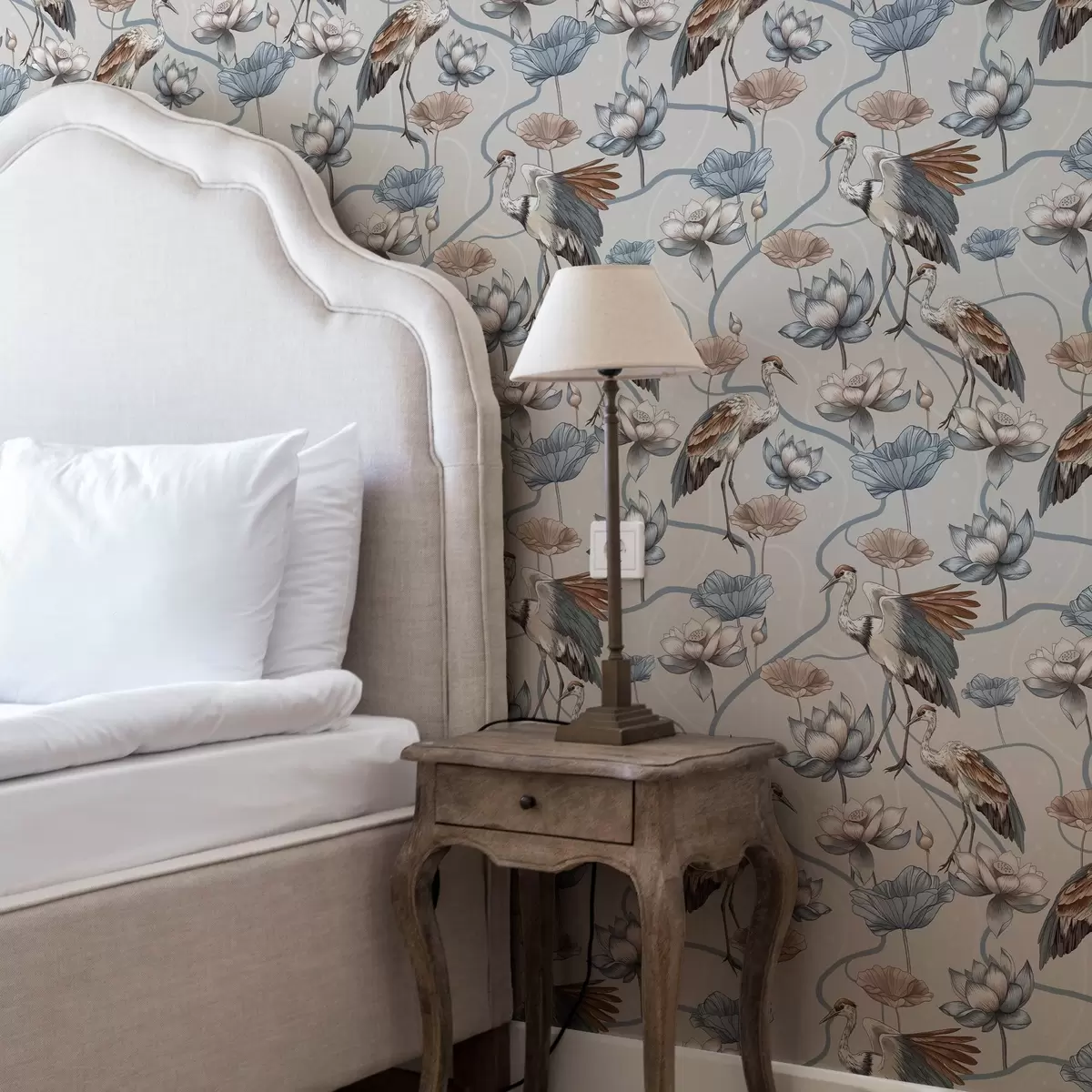 Papel pintado Composición con grullas y lotos en colores pastel Nr. a00064