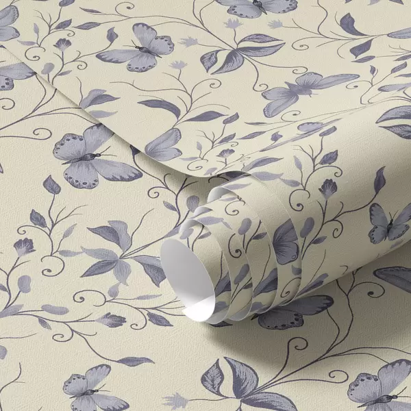 Papel pintado Mariposas azules y hojas Nr. a00070