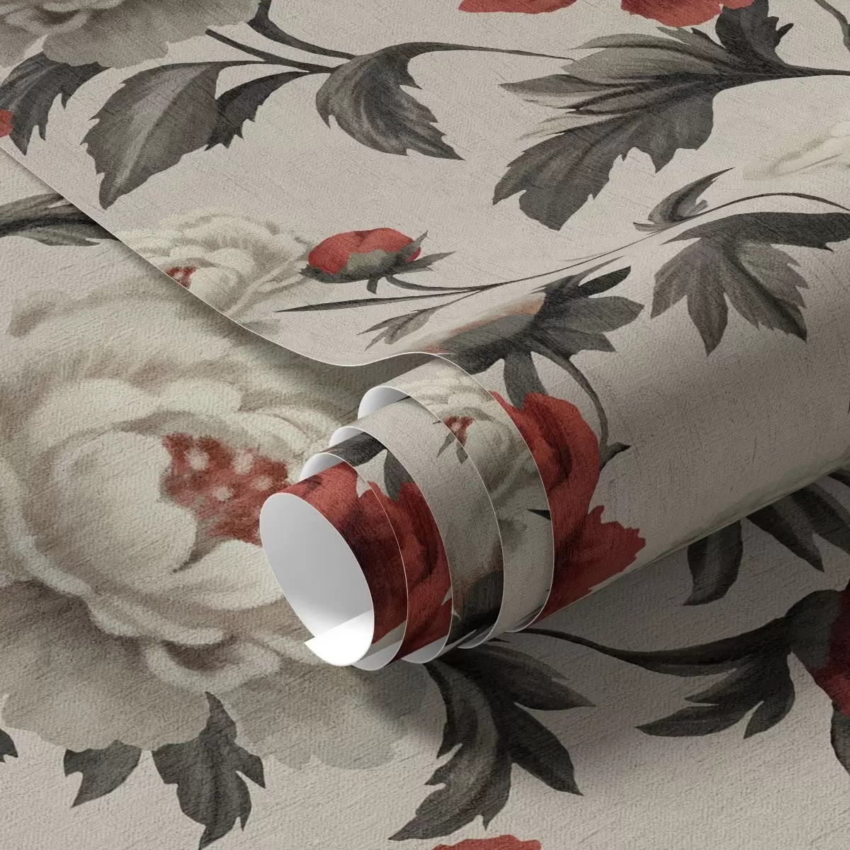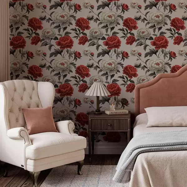Papel pintado Peonías de estilo retro sobre fondo beige Nr. a00107