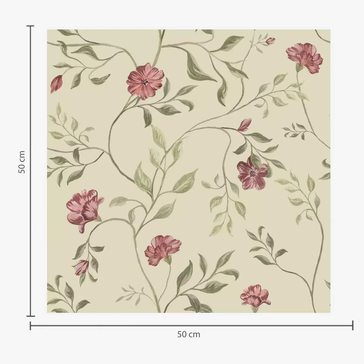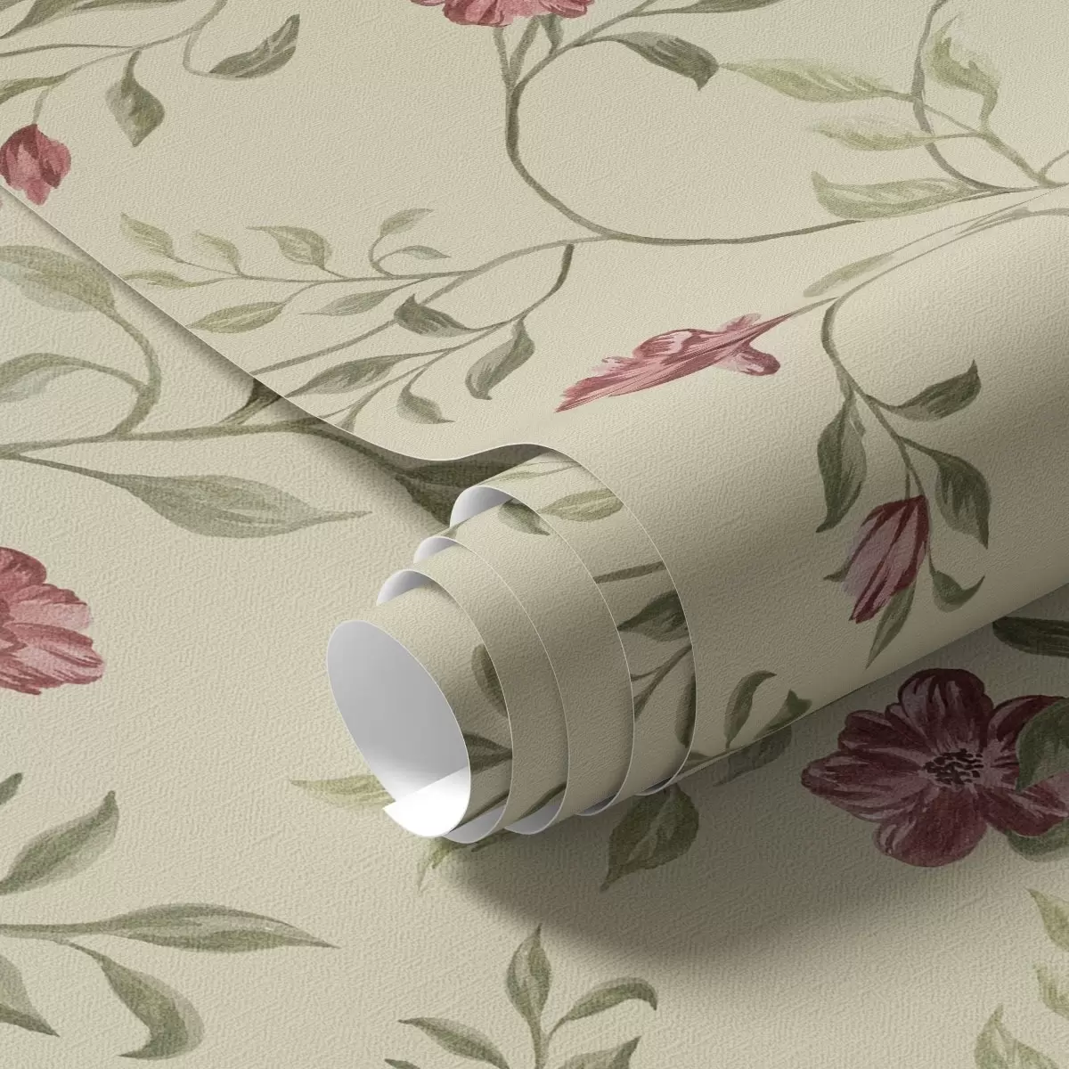 Papel pintado Flores y capullos rojos sobre fondo claro Nr. a00114