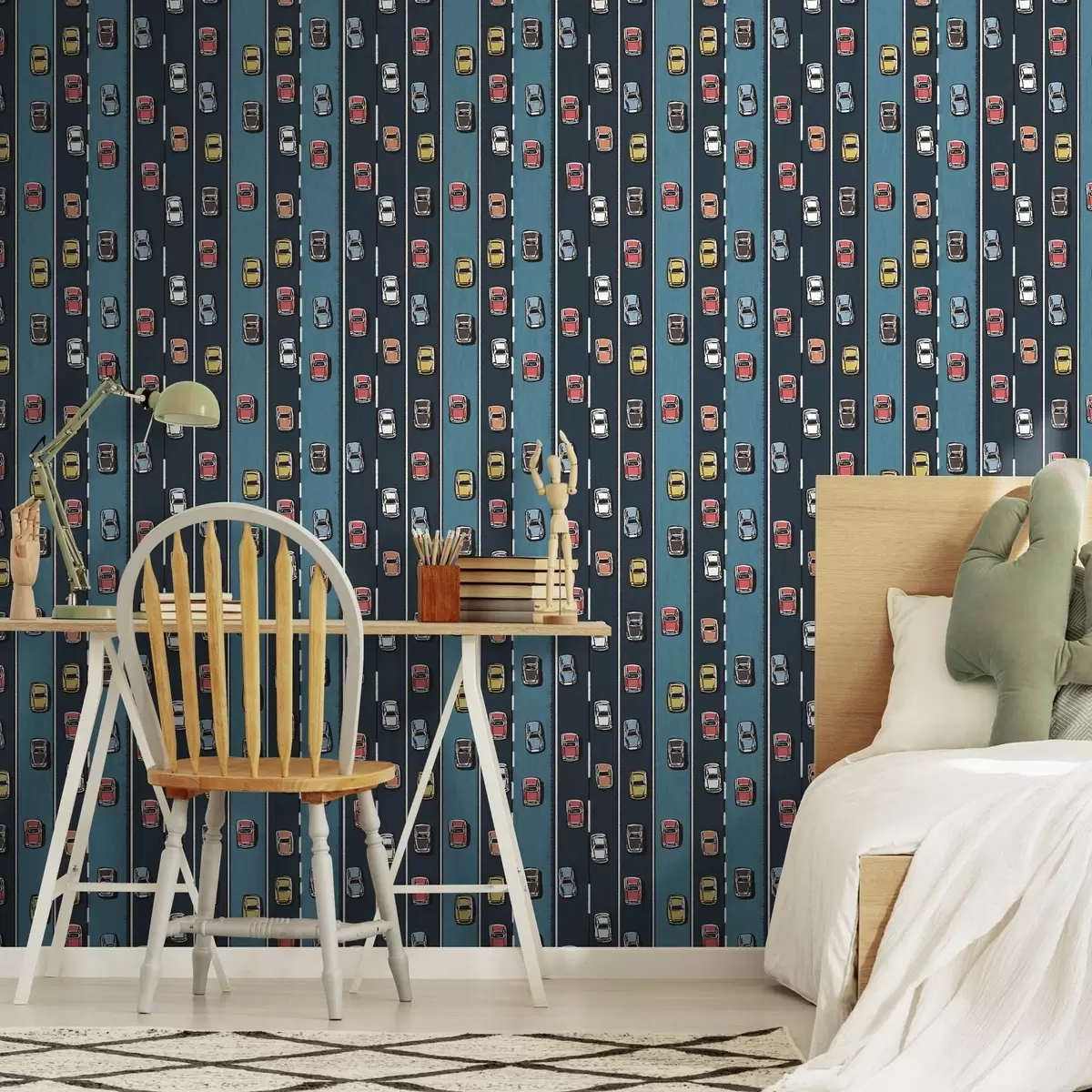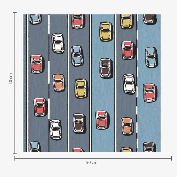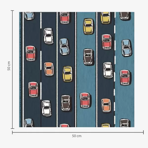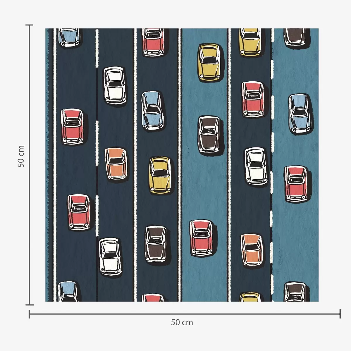 Papel pintado Coche retro en carretera azul marino al estilo de los años 60 Nr. a00118