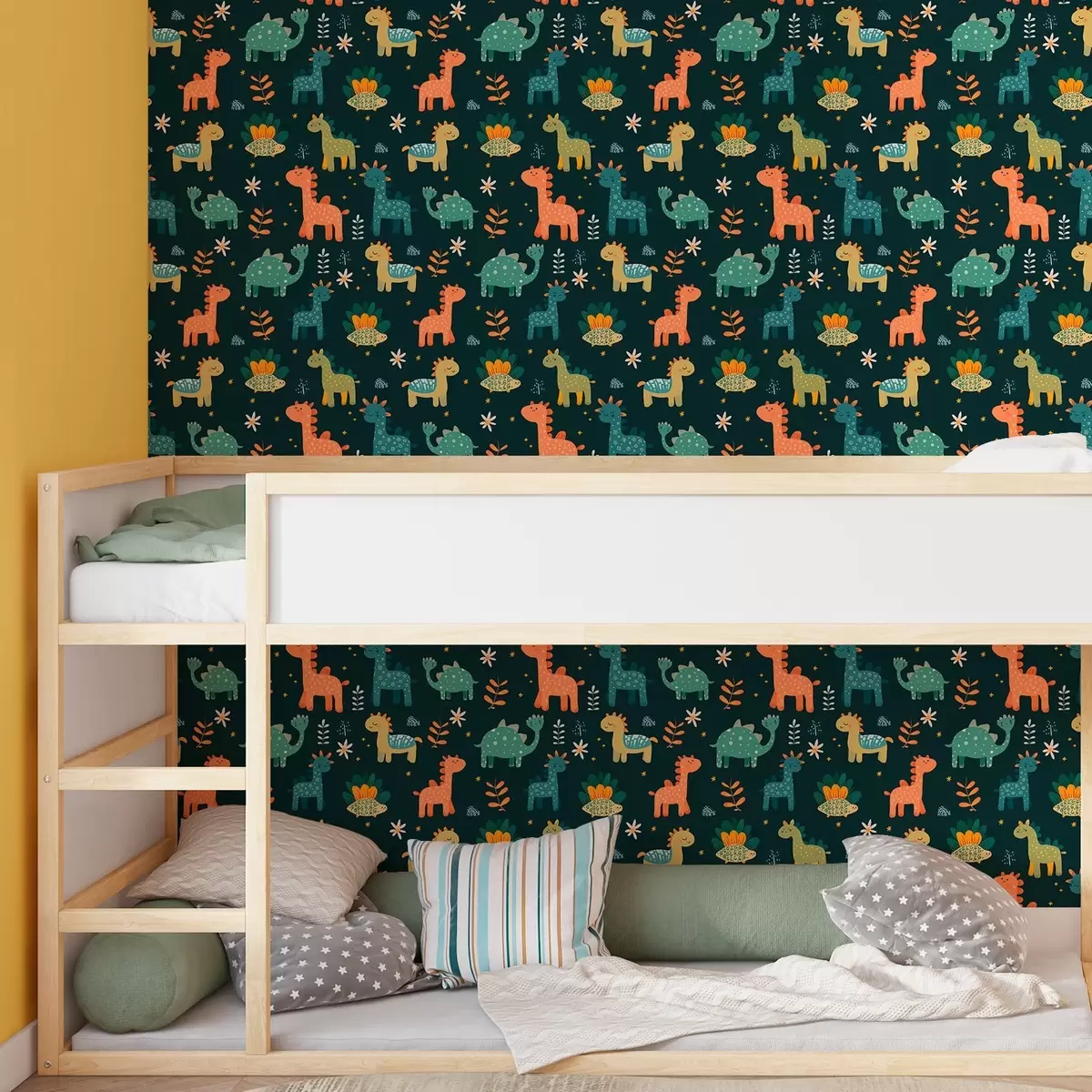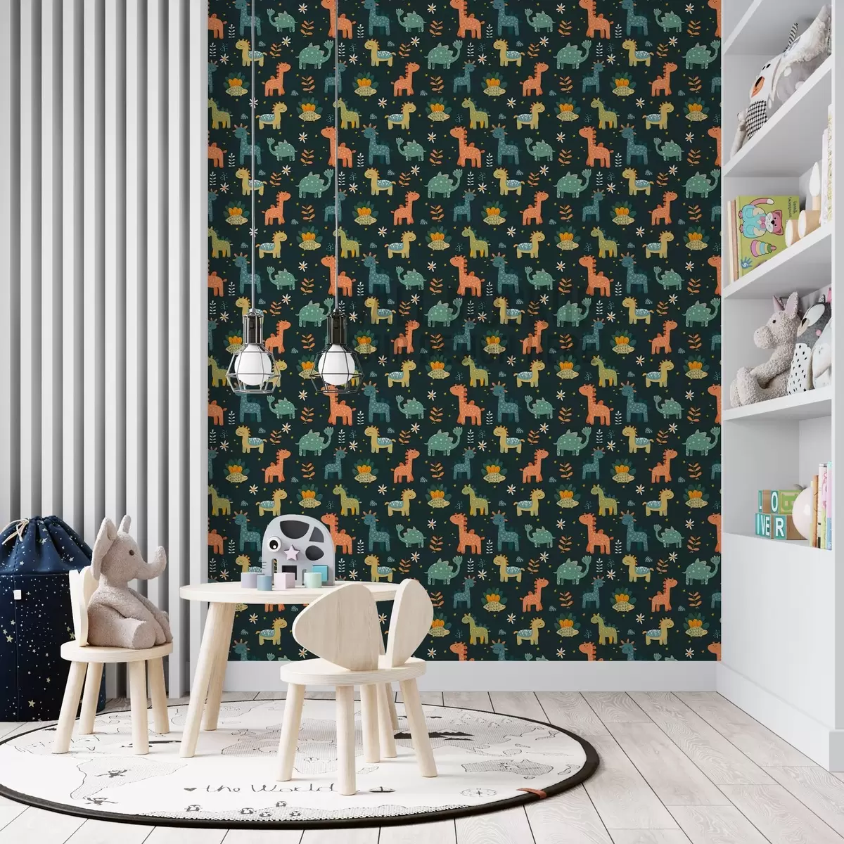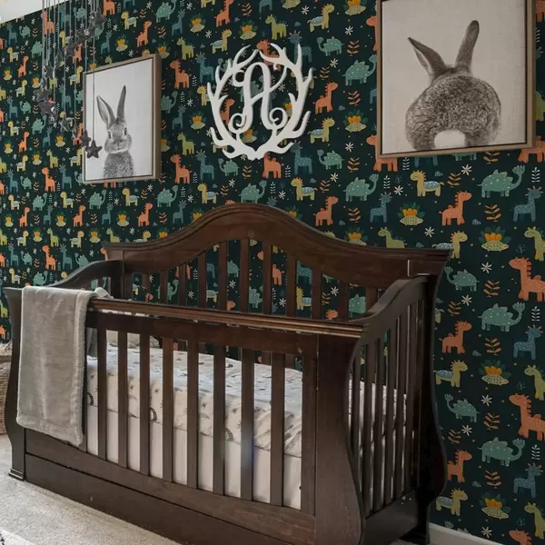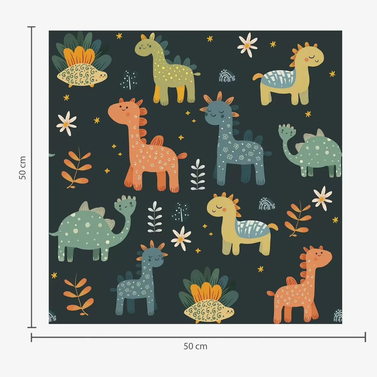 Papel pintado Divertidos dinosaurios en colores pastel sobre fondo oscuro Nr. a00125v2