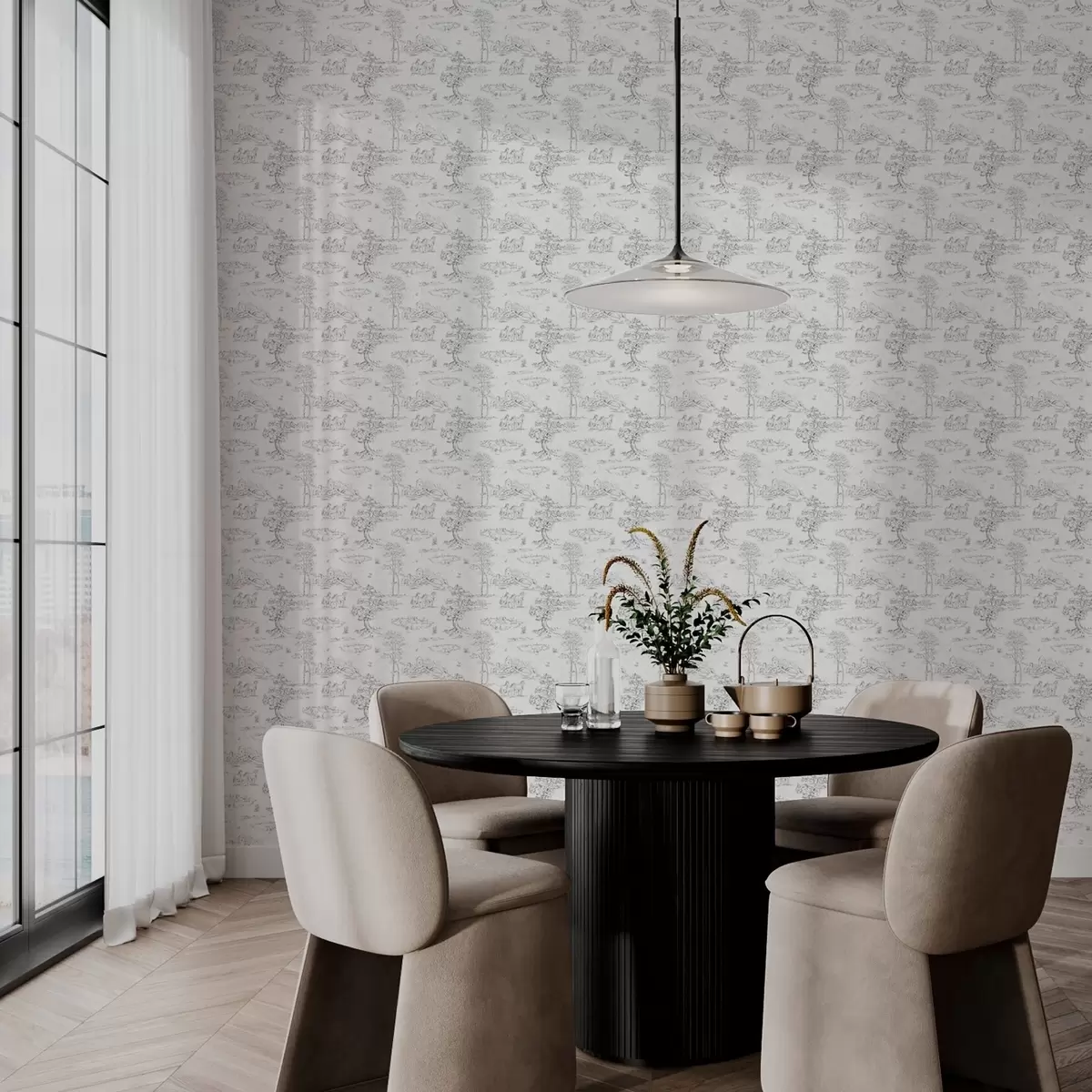 Papel pintado Paisaje con caballos en estilo gris y blanco Nr. a00133v2
