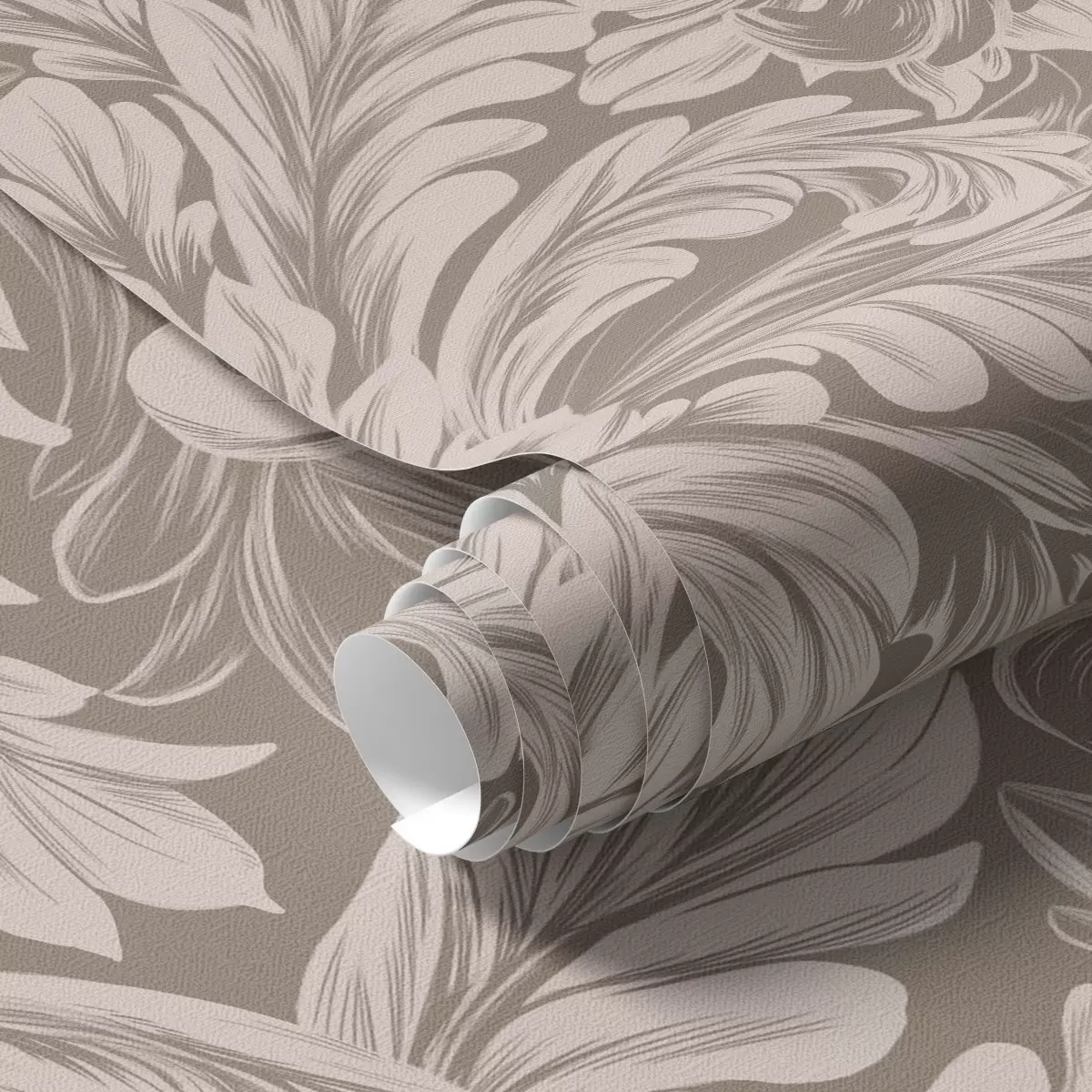 Papel pintado Hojas color crema sobre fondo marrón Nr. a00135v3