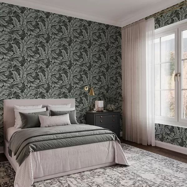 Papel pintado Fondo verde oscuro con rizos color menta a00135v4