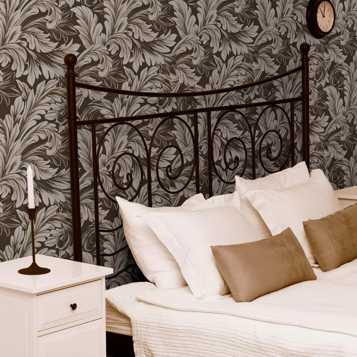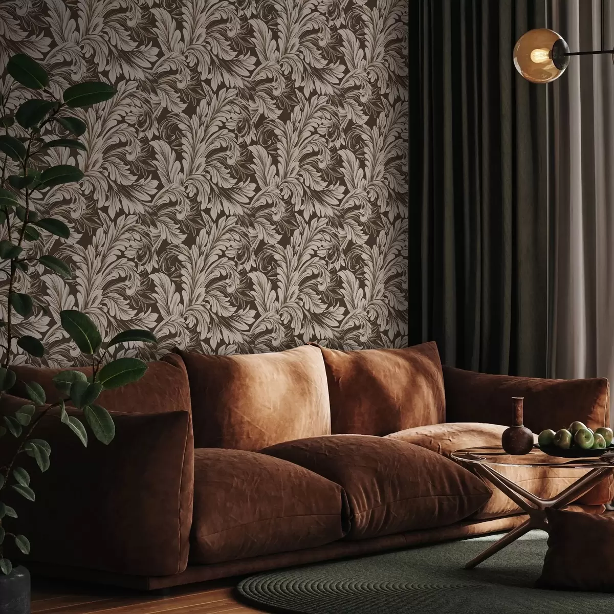 Papel pintado Motivo barroco con hojas sobre fondo oscuro Nr. a00135v5