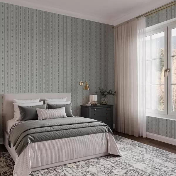 Papel pintado Motivo étnico con dibujos en colores gris y menta Nr. a00138