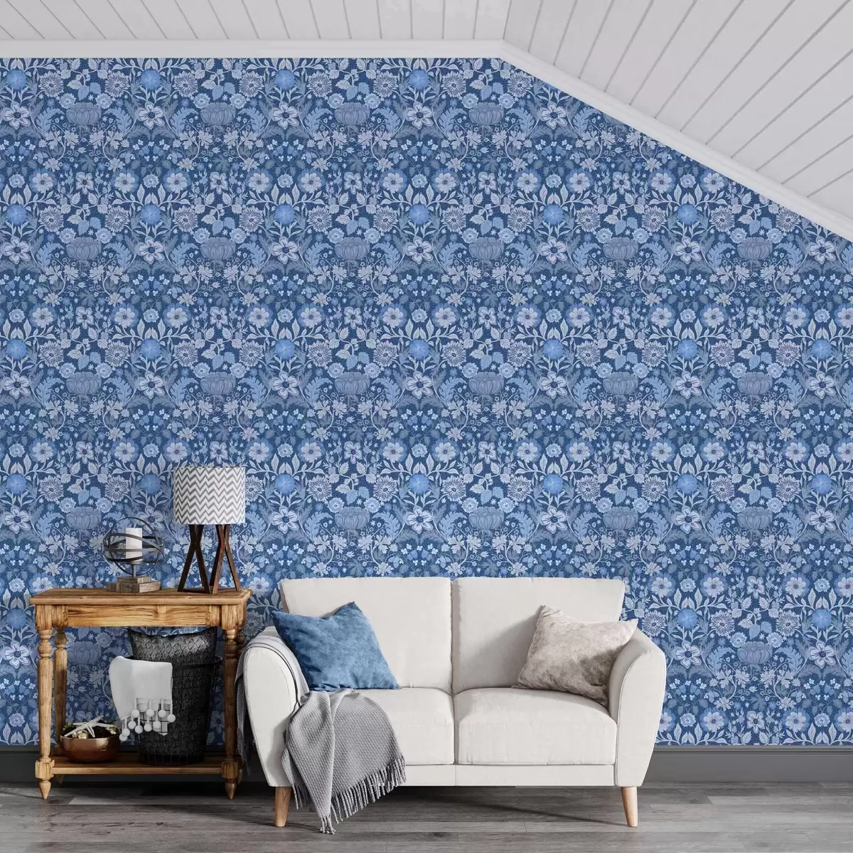 Papel pintado Estampado botánico azul de estilo vintage Nr. a00145v2