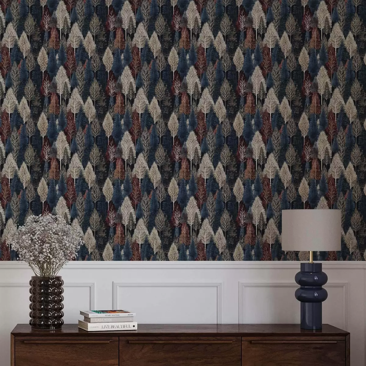 Papel pintado Bosque abstracto con árboles sobre fondo azul oscuro a00150