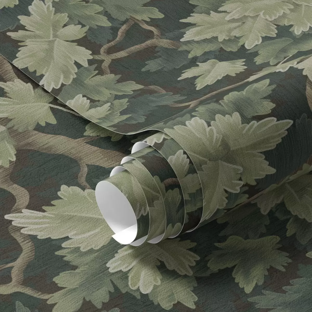 Papel pintado Hojas de roble sobre fondo verde Nr. a00151