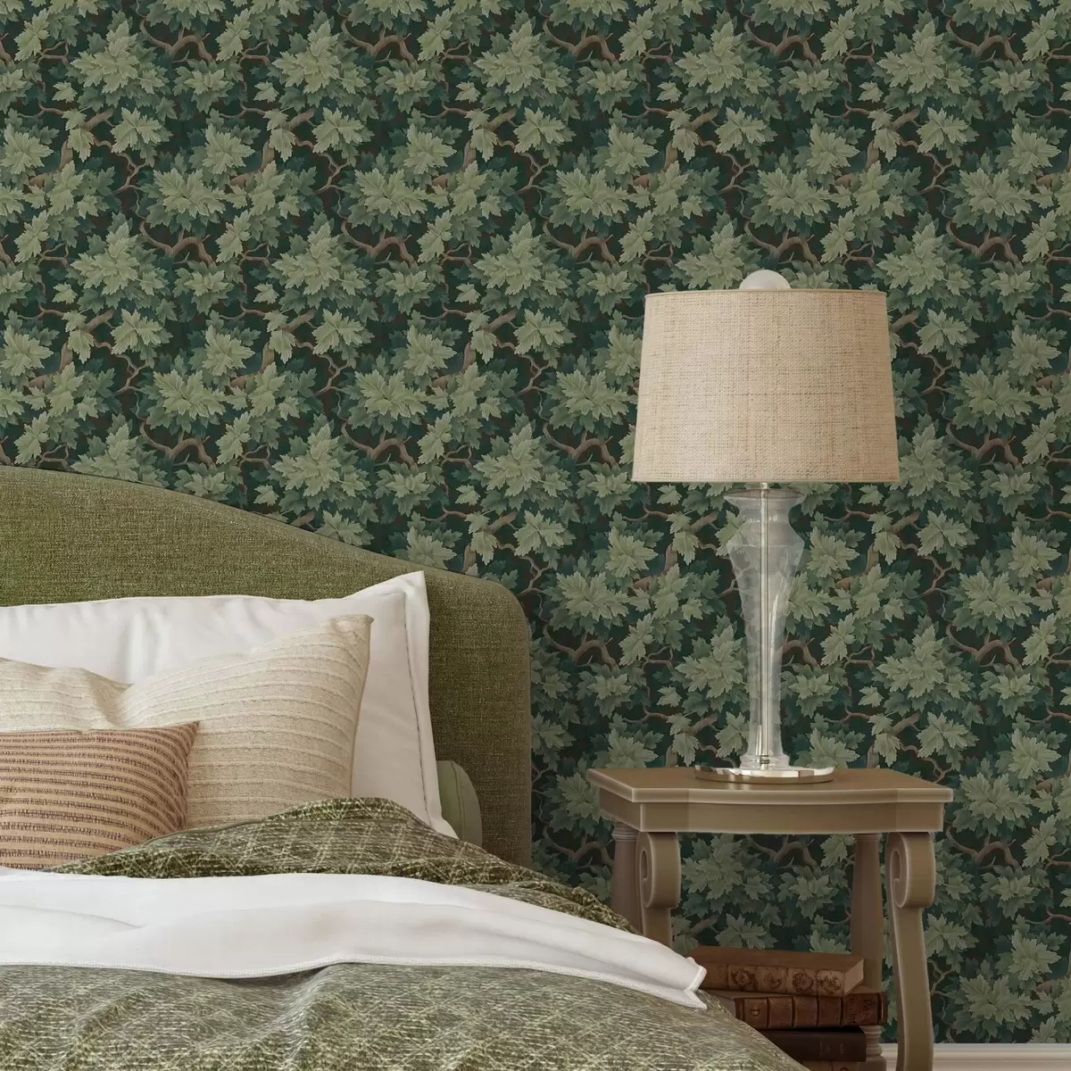 Papel pintado Hojas de roble sobre fondo verde Nr. a00151