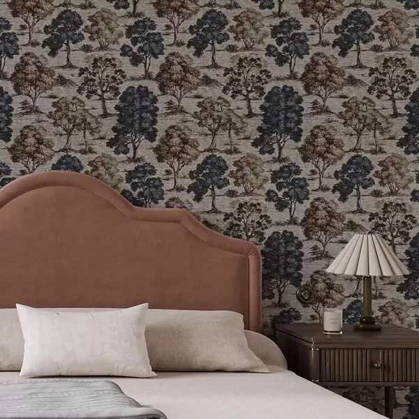 Papel pintado Gráfico con árboles sobre fondo de lino claro Nr. a00152