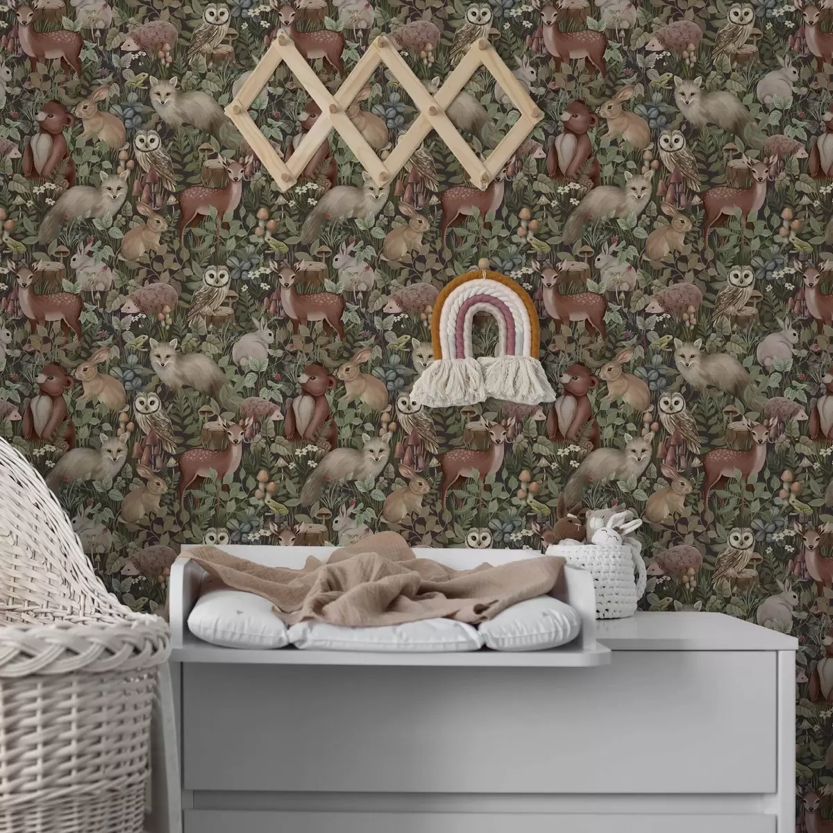 Papel pintado Animales del bosque en estilo cuento de hadas a00156