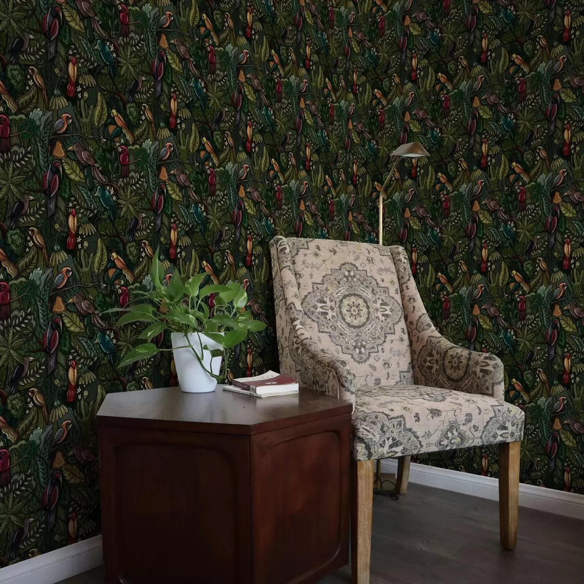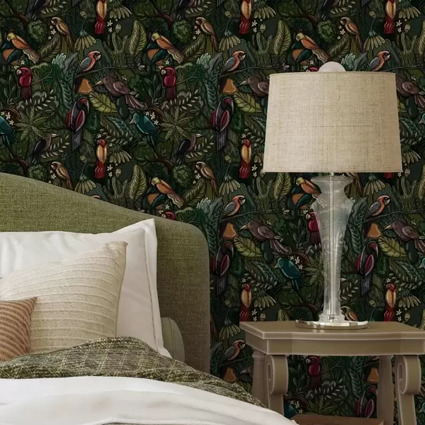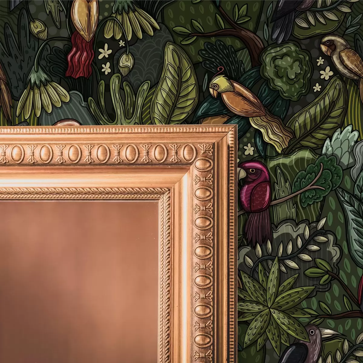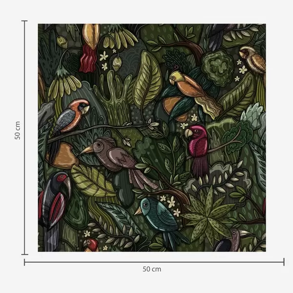 Papel pintado Aves exóticas en la selva al estilo de un grabado Nr. a00157