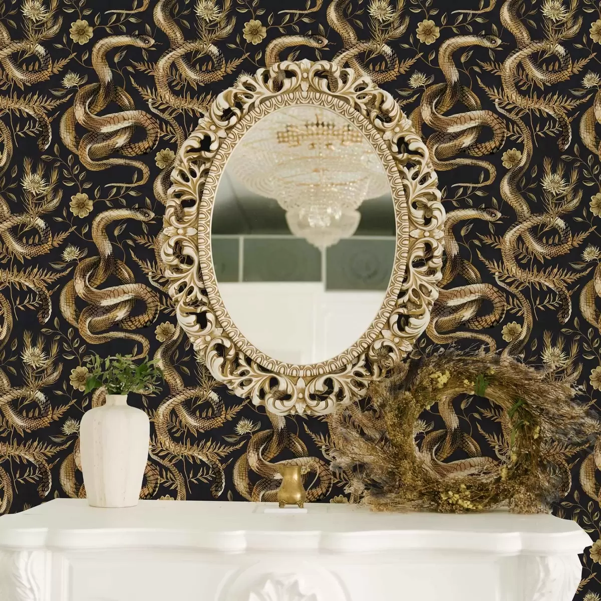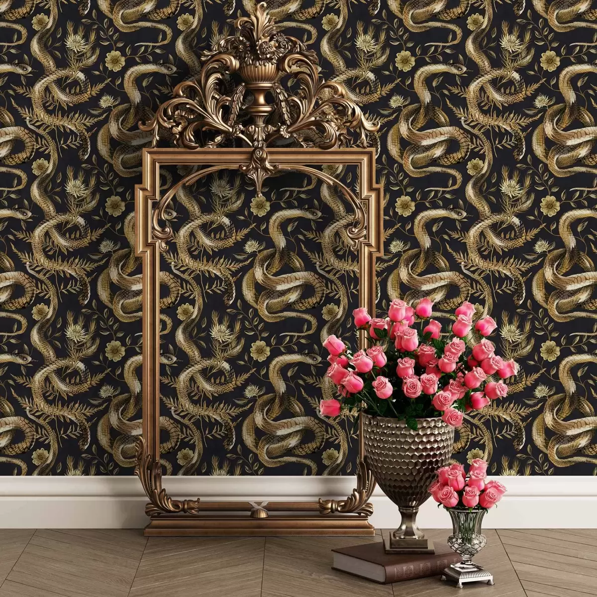 Papel pintado Serpientes y flores sobre fondo oscuro Nr. a00158