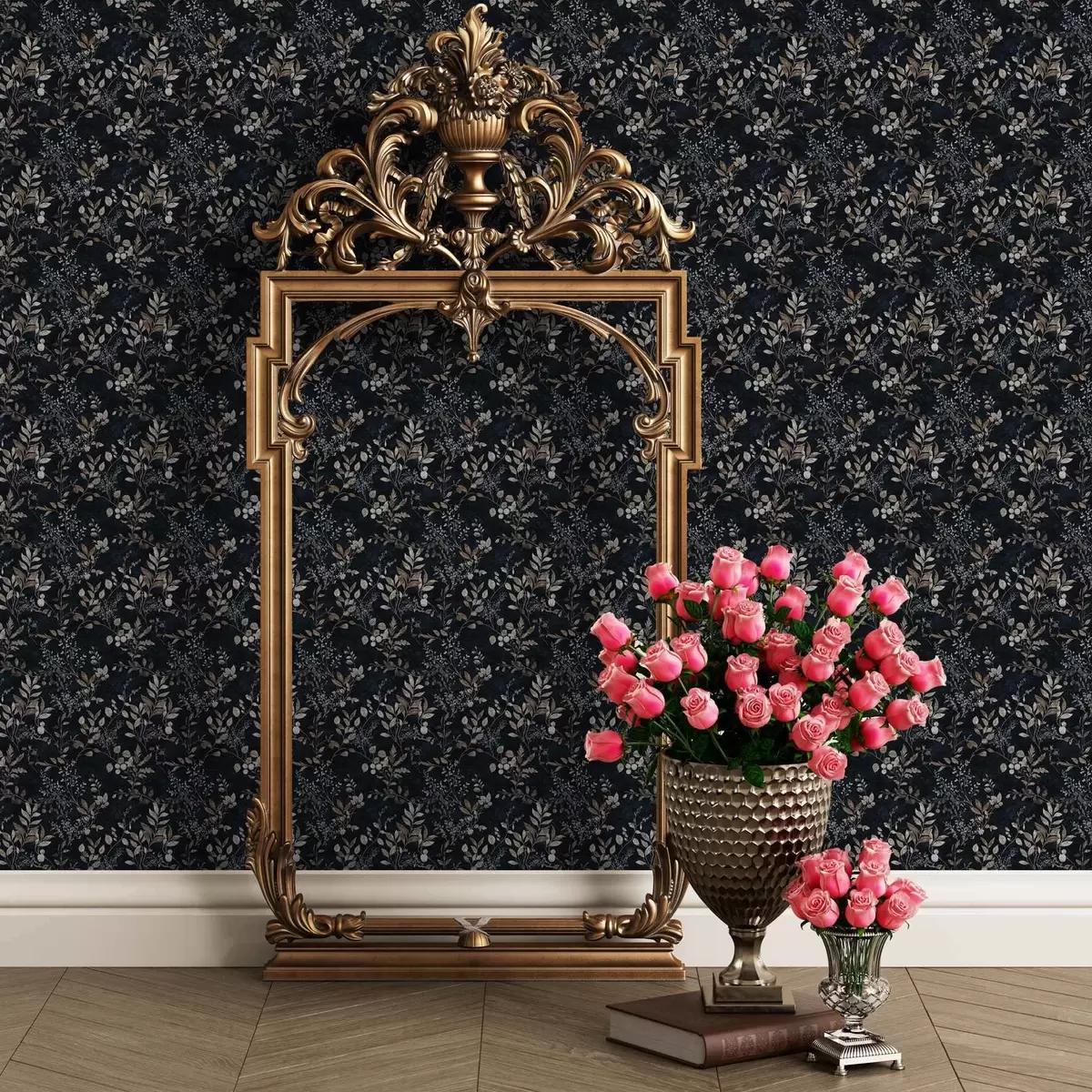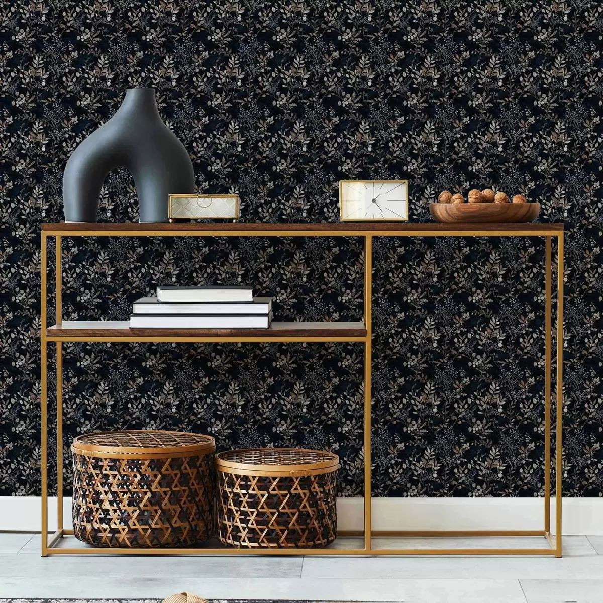 Papel pintado Estampado floral clásico en colores claros sobre fondo oscuro Nr. a00166v2