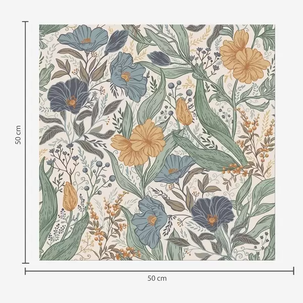 Papel pintado Ilustración dibujada a mano de flores de prado en colores cálidos Nr. a00180