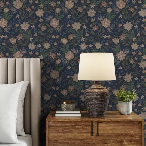 Papel pintado Motivo floral azul oscuro de estilo vintage Nr. a00183