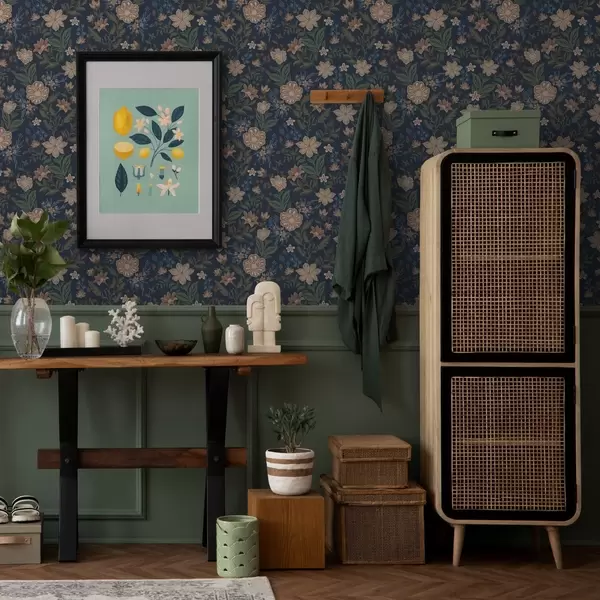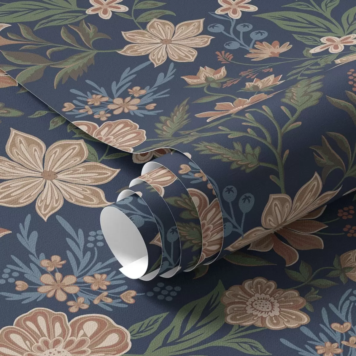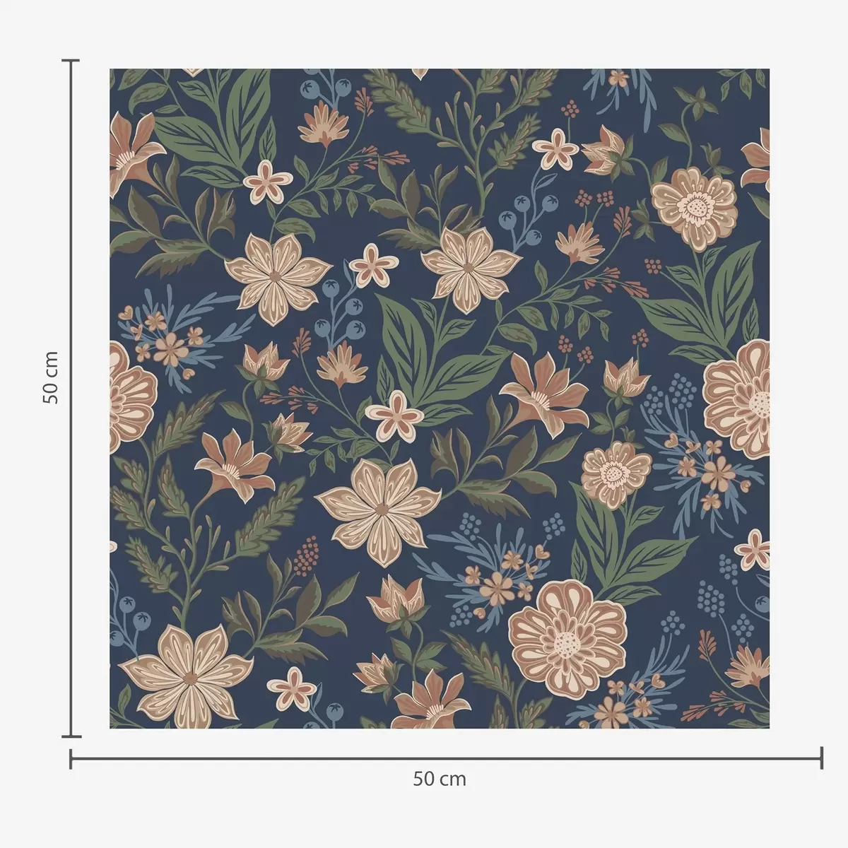 Papel pintado Motivo floral azul oscuro de estilo vintage Nr. a00183