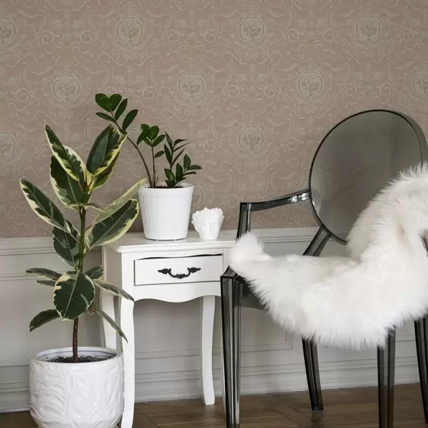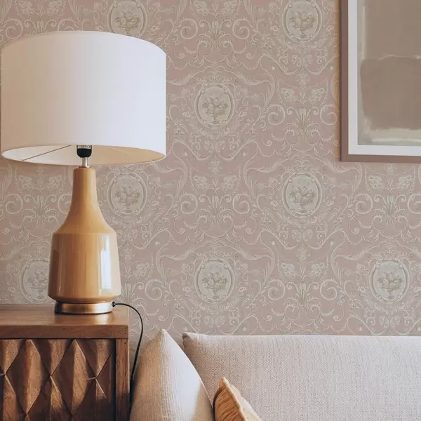 Papel pintado Estampado clásico rosa con medallones y flores Nr. a00185