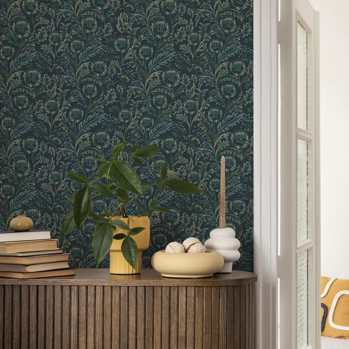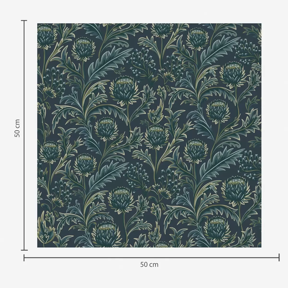 Papel pintado Motivo floral verde oscuro con alcachofas Nr. a00186