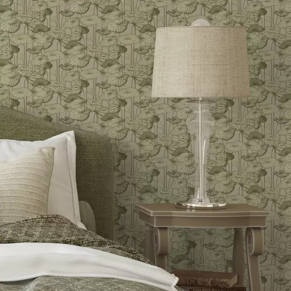 Papel pintado Hojas de loto gráficas de estilo retro sobre fondo beige Nr. a00188