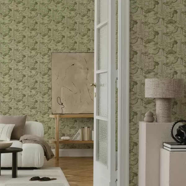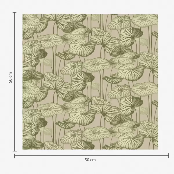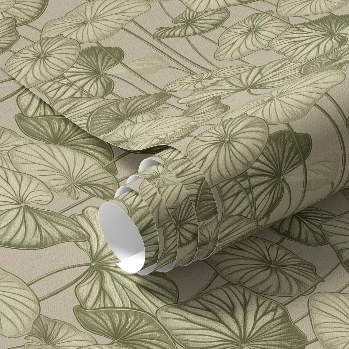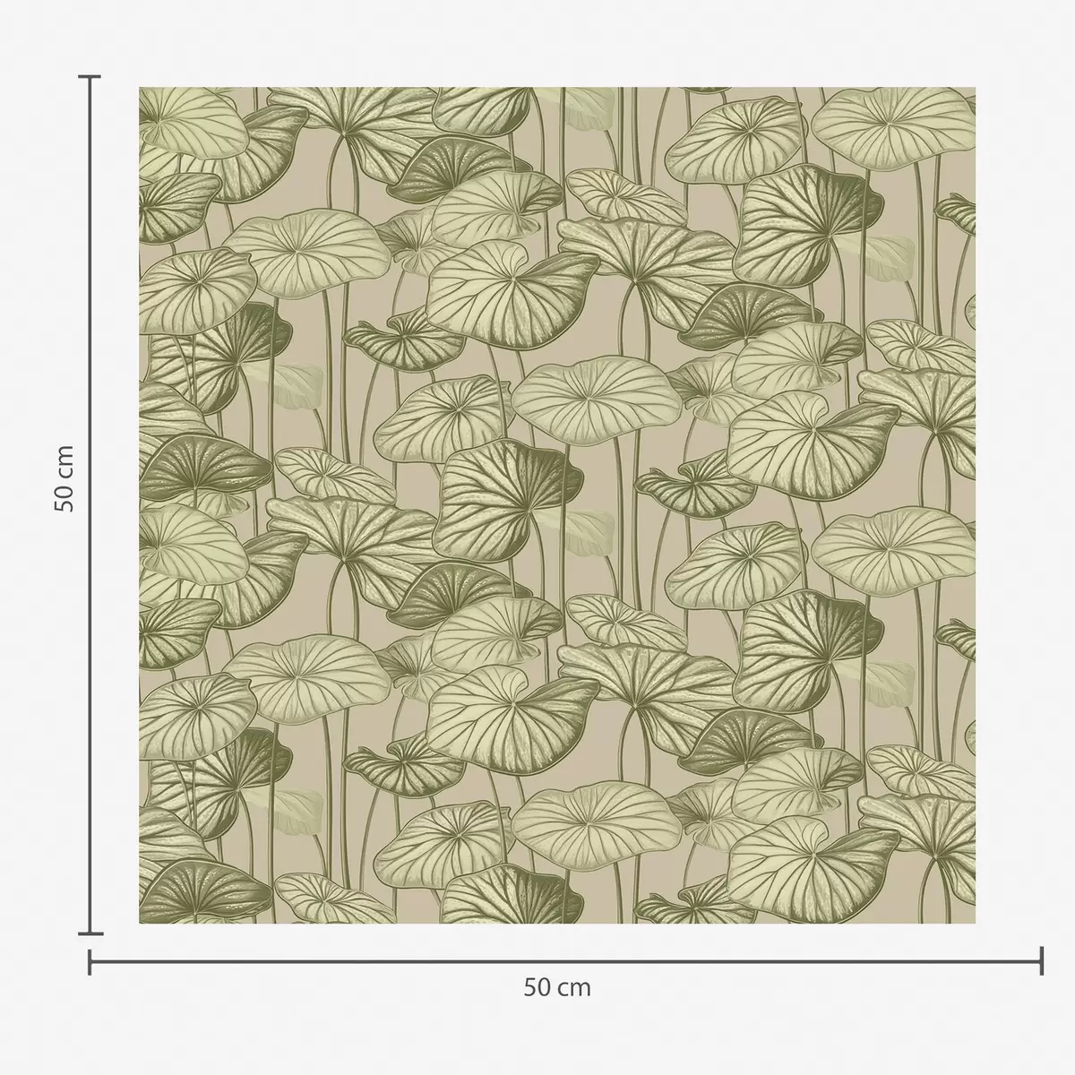 Papel pintado Hojas de loto gráficas de estilo retro sobre fondo beige Nr. a00188