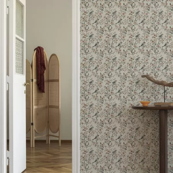 Papel pintado Pájaros sobre ramas con flores en estilo acuarela retro Nr. a00197