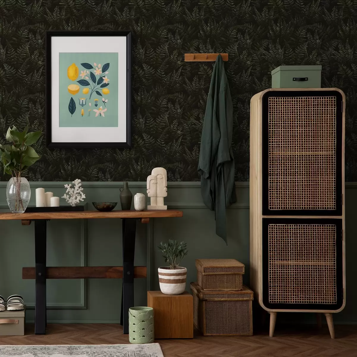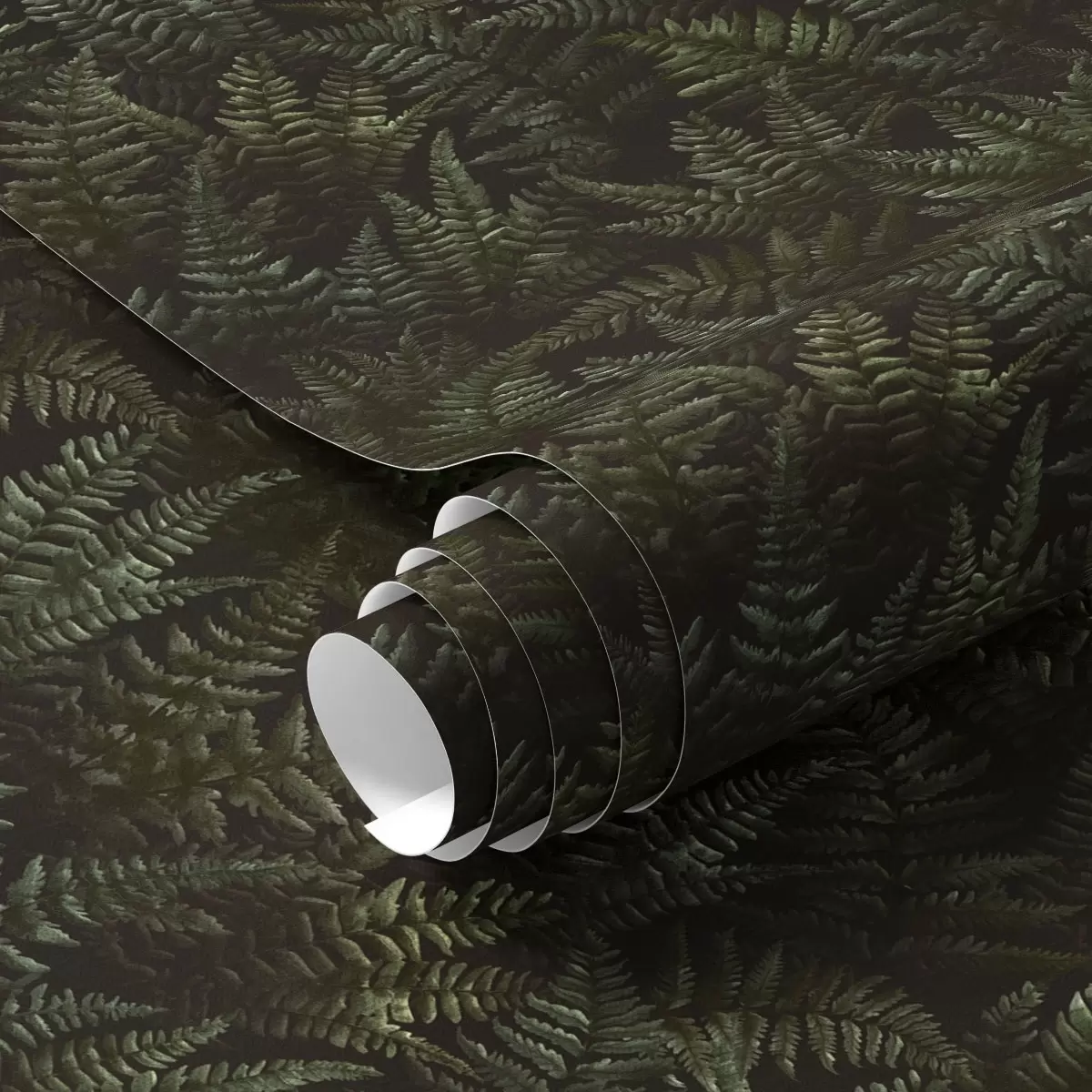 Papel pintado Helecho oscuro, adorno de bosque, colores nocturnos a00214
